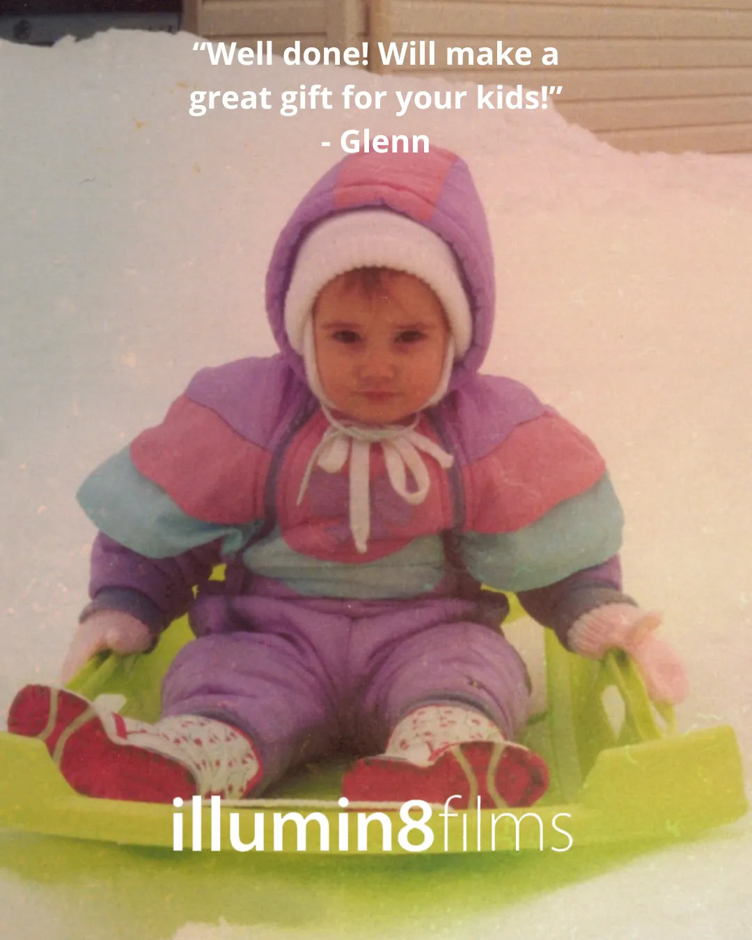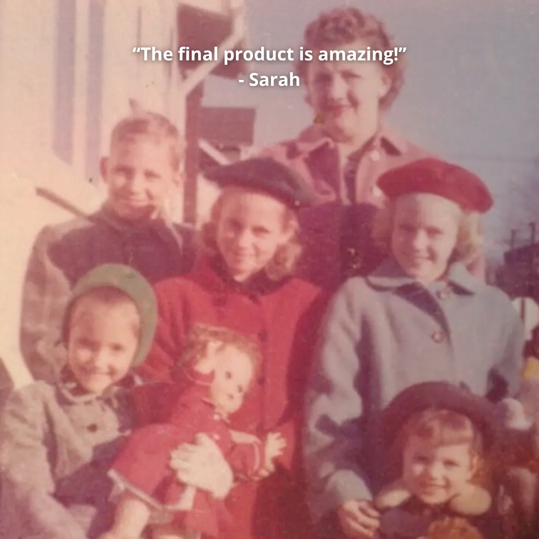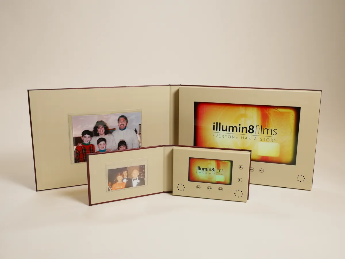 The final film is presented in a luxurious coffee table video book, designed to be displayed and replayed for years to come. You’ll also receive a digital copy for sharing with family and friends, plus a polished archive of the full interviews and digitized materials. The result is more than a film, it’s a legacy your loved ones can hold, watch, and pass down across generations.