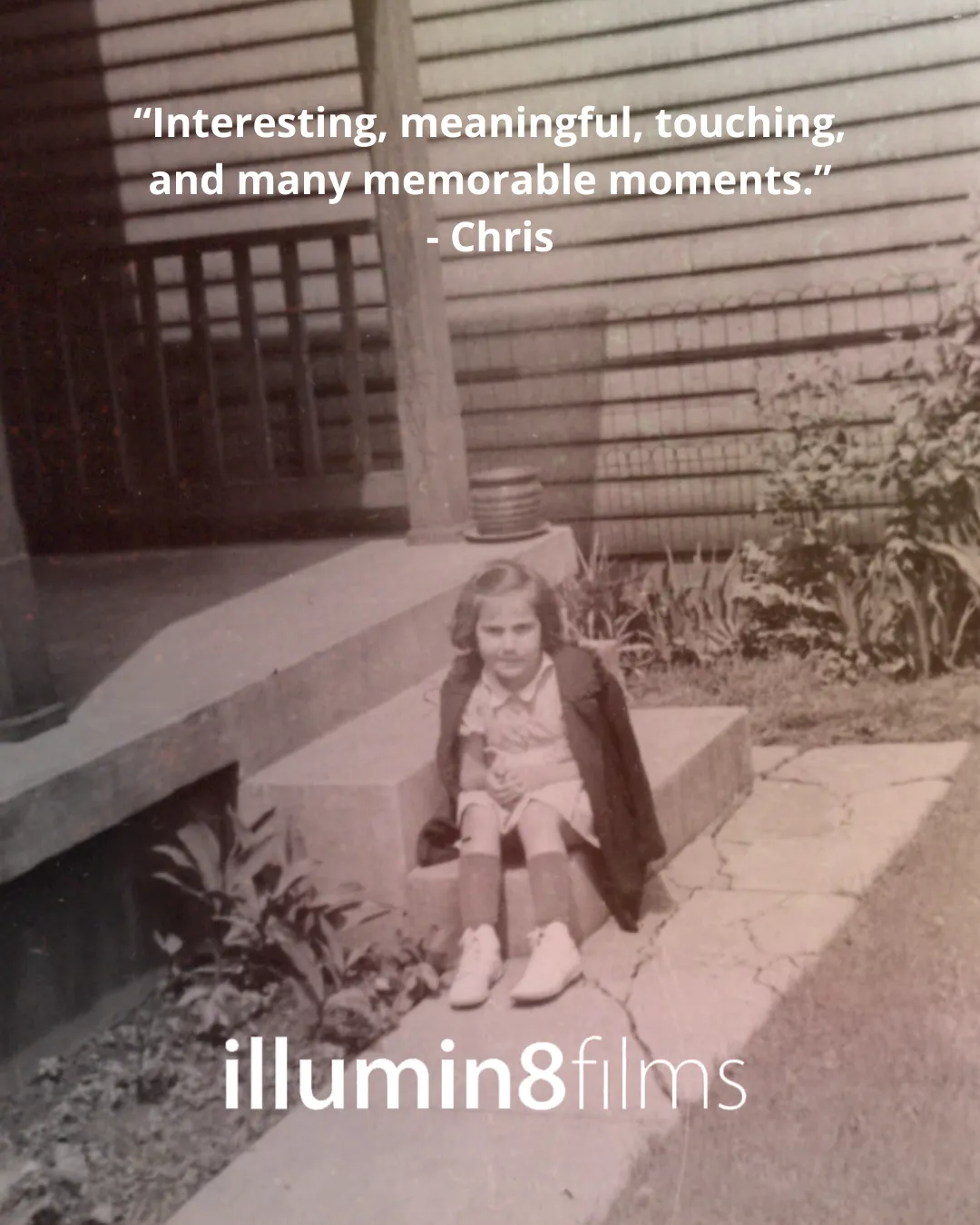 After filming, we carefully transcribe interviews and begin weaving together your story with digitized archives, music, and visuals. The process is cinematic, not chronological, designed to capture your essence rather than just your timeline. You’ll see updates along the way, and once a first-look cut is ready, we invite you to share feedback. Every detail is shaped with care until the film feels true, timeless, and deeply loved.