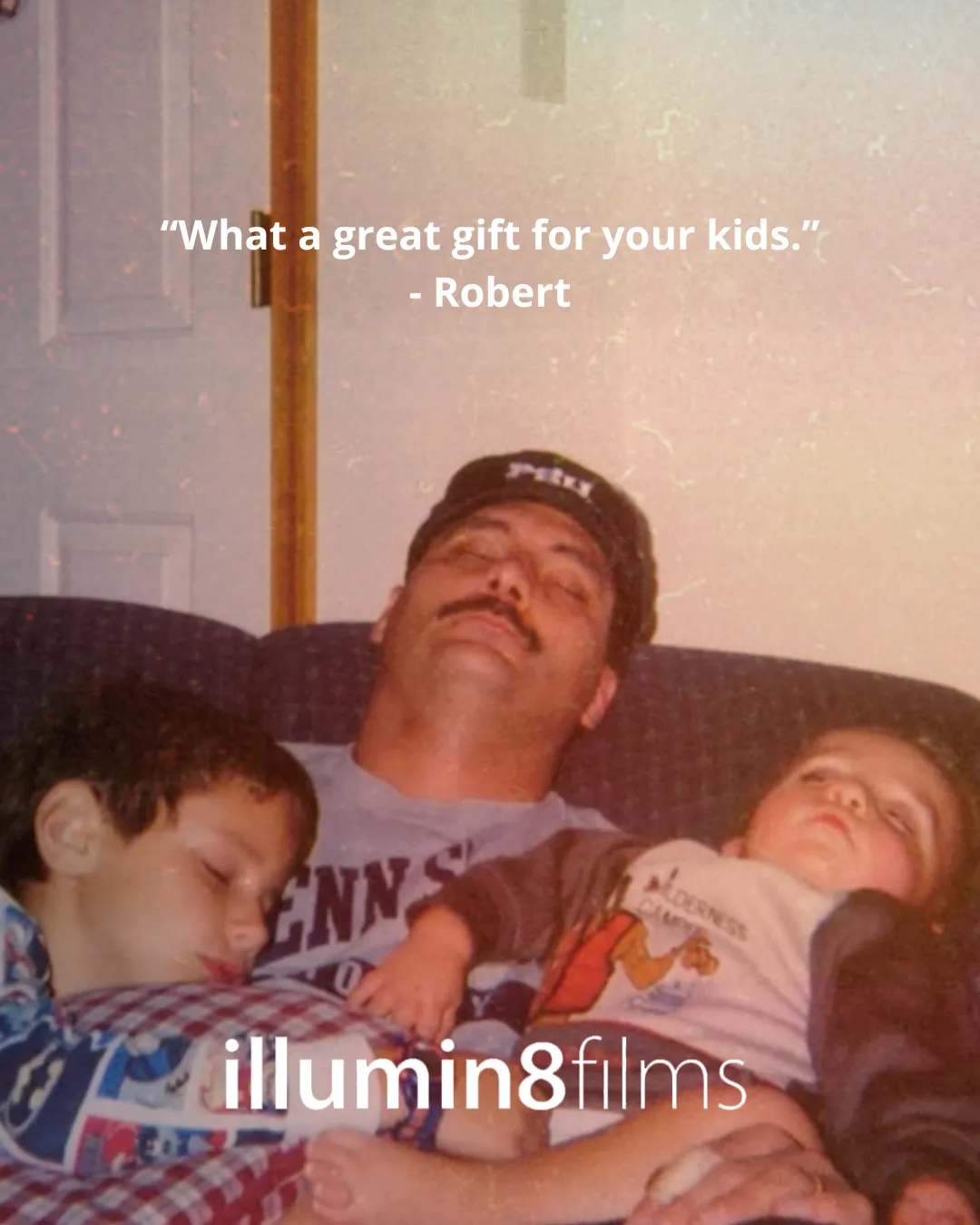 We begin with a simple Zoom conversation. During this call, our team learns about the story you want to preserve and answers any questions. You’ll receive a beautifully designed booklet and a digital message from the gift-giver to introduce the experience. We’ll also share a starter list of questions, so on the filming day, the conversation feels natural and effortless.